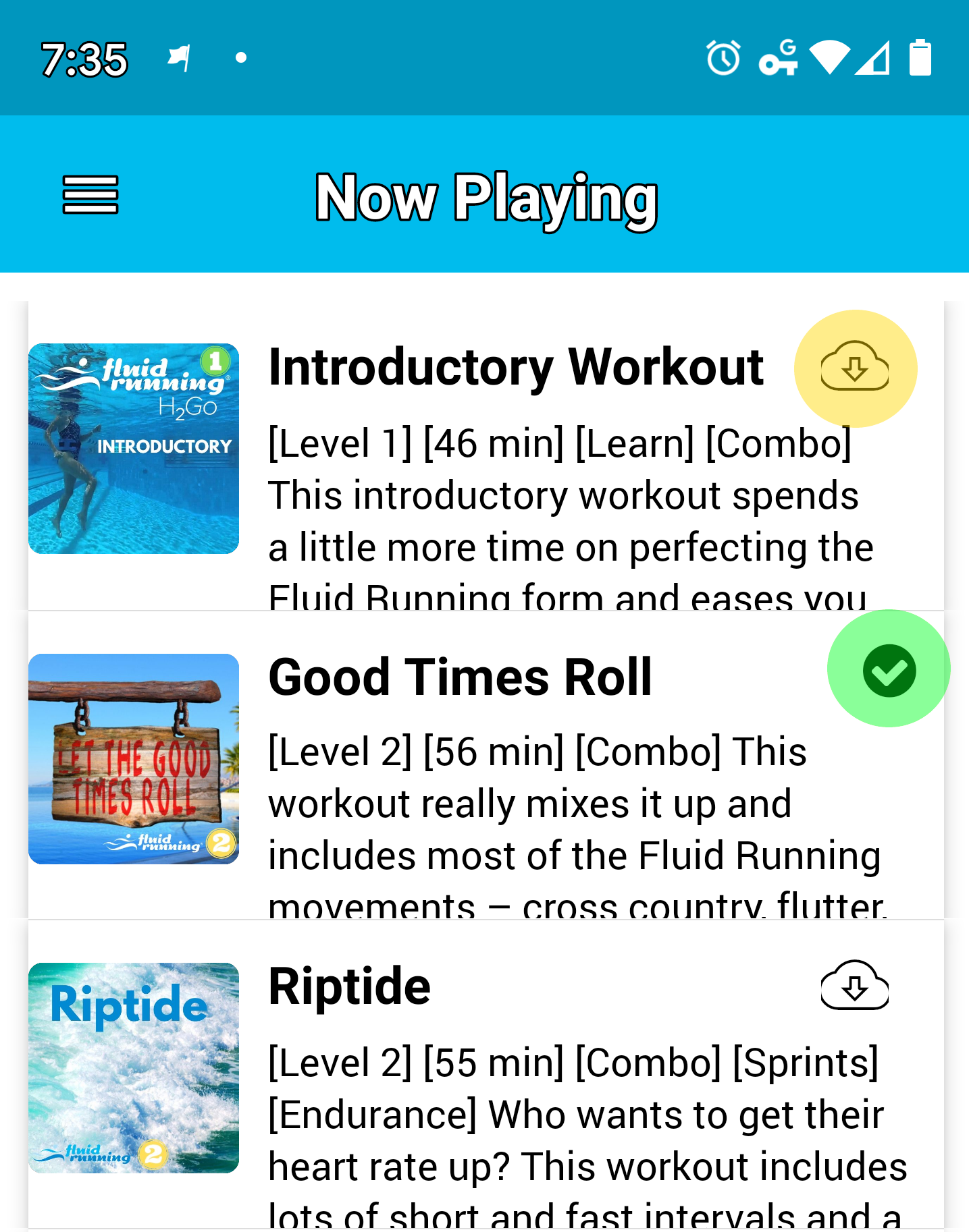 Click on the cloud icon next to the workout (yellow)